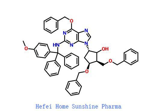 1S,3R,4S)-3-(benzyloxy-5-[6-(benzyloxy)-2-((4-Methoxyphen yl)diphenylMethylaMino) -9H-purin-9-yl)-2-(benzyloxyMethyl)cyclopentanol is a medicine Intermediates and organic synthesis intermediates can be used in laboratory research and development processes and chemical and pharmaceutical synthesis processes, en worden voornamelijk gebruikt als entecavir tussenproducten.