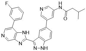 N- ((5-{3-[7-(3-fluorophenyl)-1H-imidazo[4,5-c]pyridin-2-yl]-1H-indazol-5-yl}pyridin-3-yl)-3-methylbutanamide;
