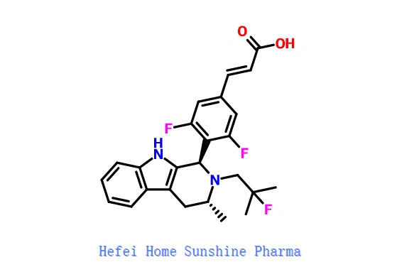 (E)-3-[3,5-Difluor-4-[(1R,3R)-2-(2-fluor-2-methylpropyl)-3-methyl-2,3,4,9-tetrahydro-1H-pyrido[3,4-b]indol-1-yl]fenyl]acrylzuur;
