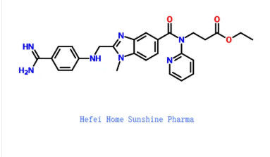 Dabigatran Ethyl Ester is een derivaat van Dabigatran, dat fungeert als een niet-peptide, directe trombine-remmer. Antitrombotisch. ethylester van Dabigatran, een opkomende orale anticoagulantia die een directe remmer is van de trombine-activiteit. IC50-waarde: Doel: trombine Dabigatran zorgt voor een stabiel antistollingseffect zonder dat periodieke laboratoriumcontroles nodig zijn. Van belang is dat er steeds meer klinisch bewijs is dat de veiligheid en werkzaamheid aantoont. Om deze redenen kan Dabigatran een revolutie betekenen in orale antistolling. Dabigatran etexilaat werd snel omgezet in Dabigatran, waarbij piekplasmaconcentraties van dabigatran werden bereikt na ongeveer 1,5 uur; de biologische beschikbaarheid van Dabigatran na orale toediening van Dabigatran etexilaat was 7,2%.