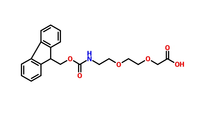 Toepassing: [2-[2-(Fmoc-amino)ethoxy]ethoxy]azijnzuur is een belangrijke tussenverbinding voor de synthese van het anti-HIV-geneesmiddel Abbott en het diabetesbehandelingsmiddel Somalutide. Deze gemodificeerde PEG en zijn homologen kunnen ook worden toegepast in de geneesmiddelenontwikkeling, zoals het modificeren van eiwitgeneesmiddelen, peptideverbindingen, liposomen en kleine molecuulgeneesmiddelen via koppelingsreacties.